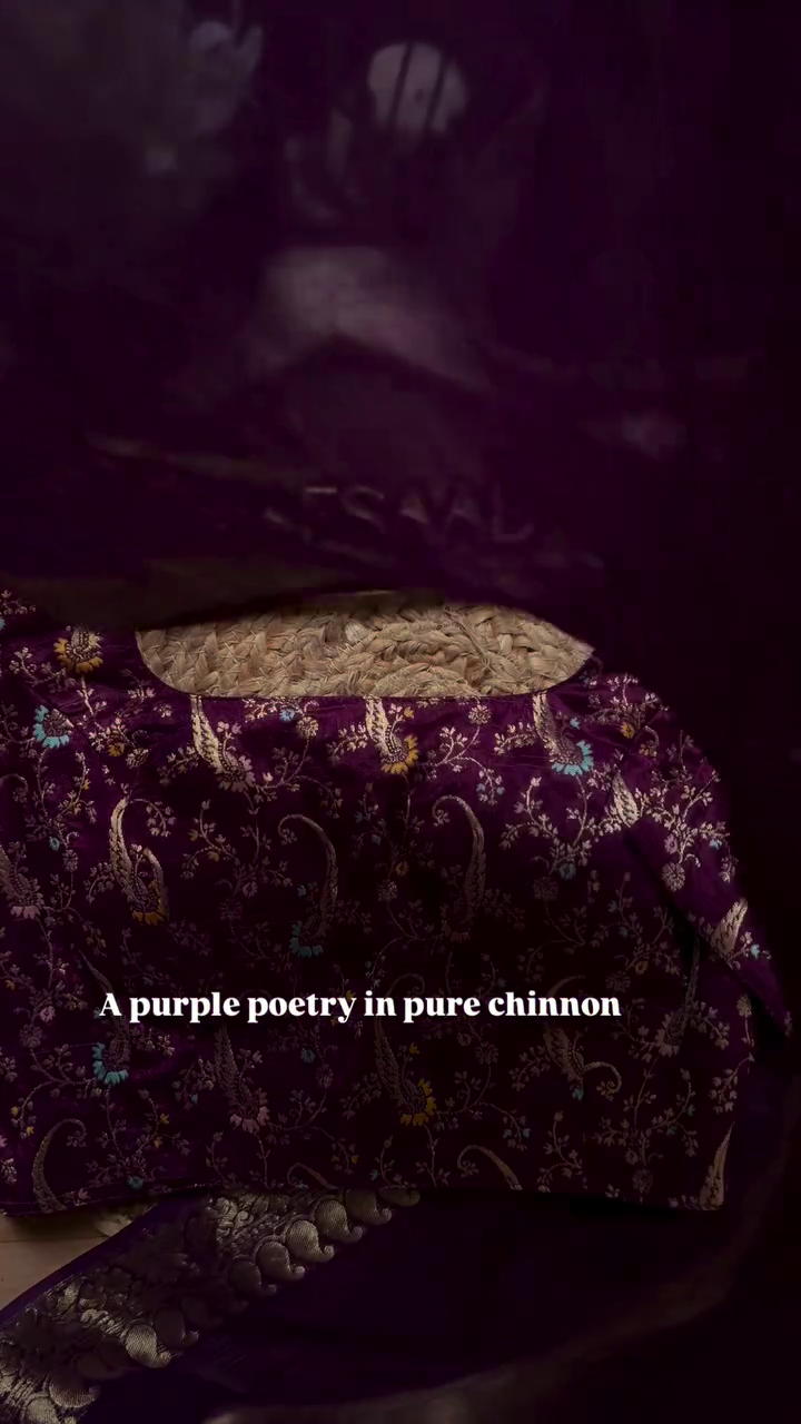 + Free ShippingA pure chinnon purple jacquard and embroidery saree is a stunning choice for traditional and festive occasions. Here’s a brief description of this type of saree: