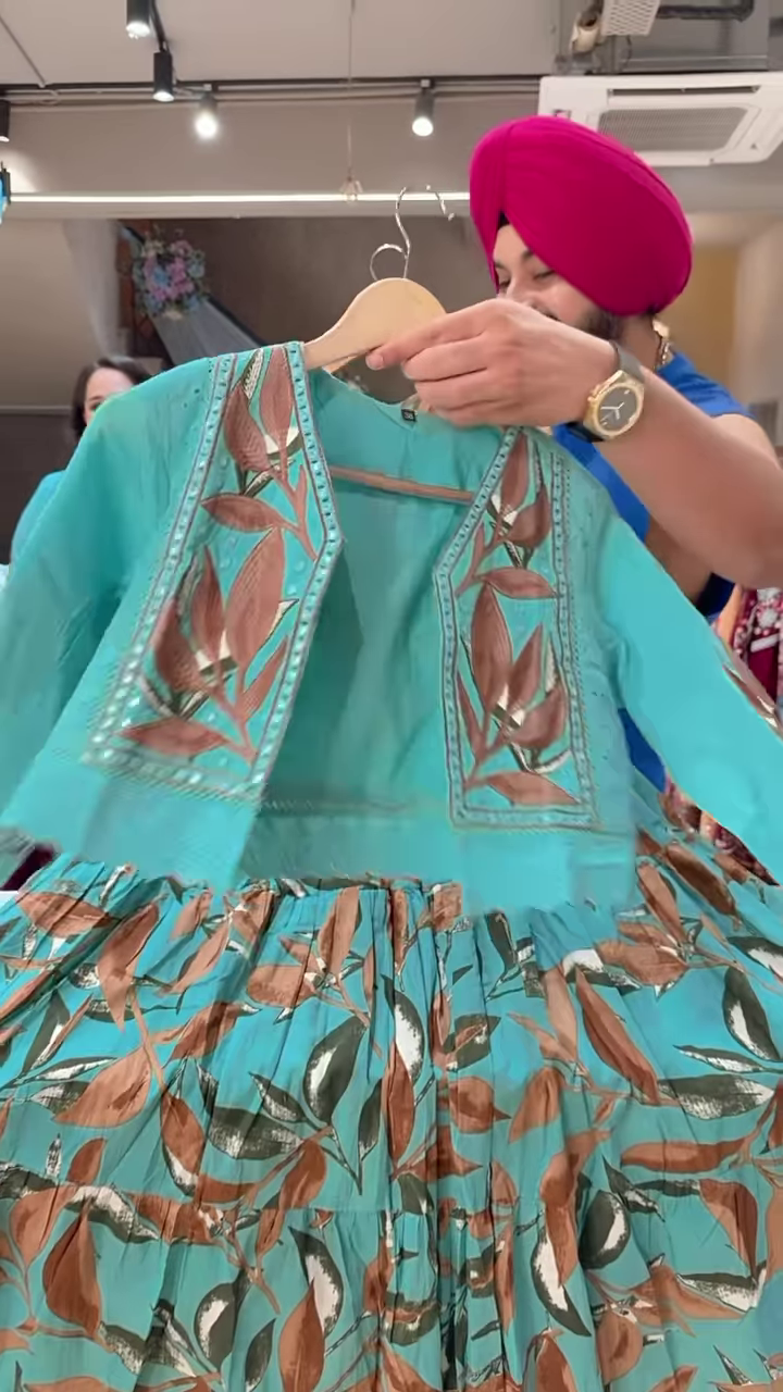 Crafted from lightweight, breathable fabric, the dress ensures comfort throughout extended wear. The lehenga’s flared cut allows for graceful movement, while the jacket provides a tailored fit that balances the ensemble. The fabric’s soft texture makes it ideal for festive occasions, allowing wearers to feel both stylish and at ease.