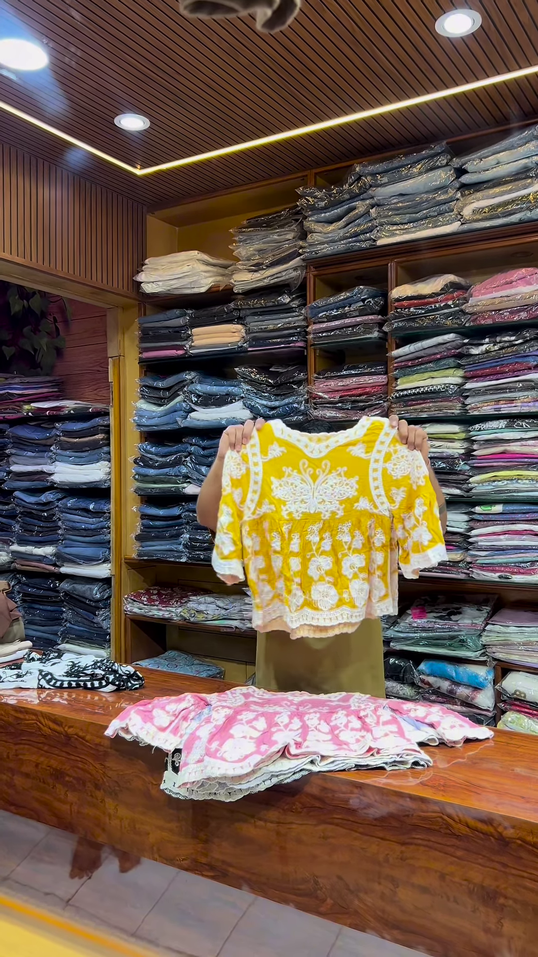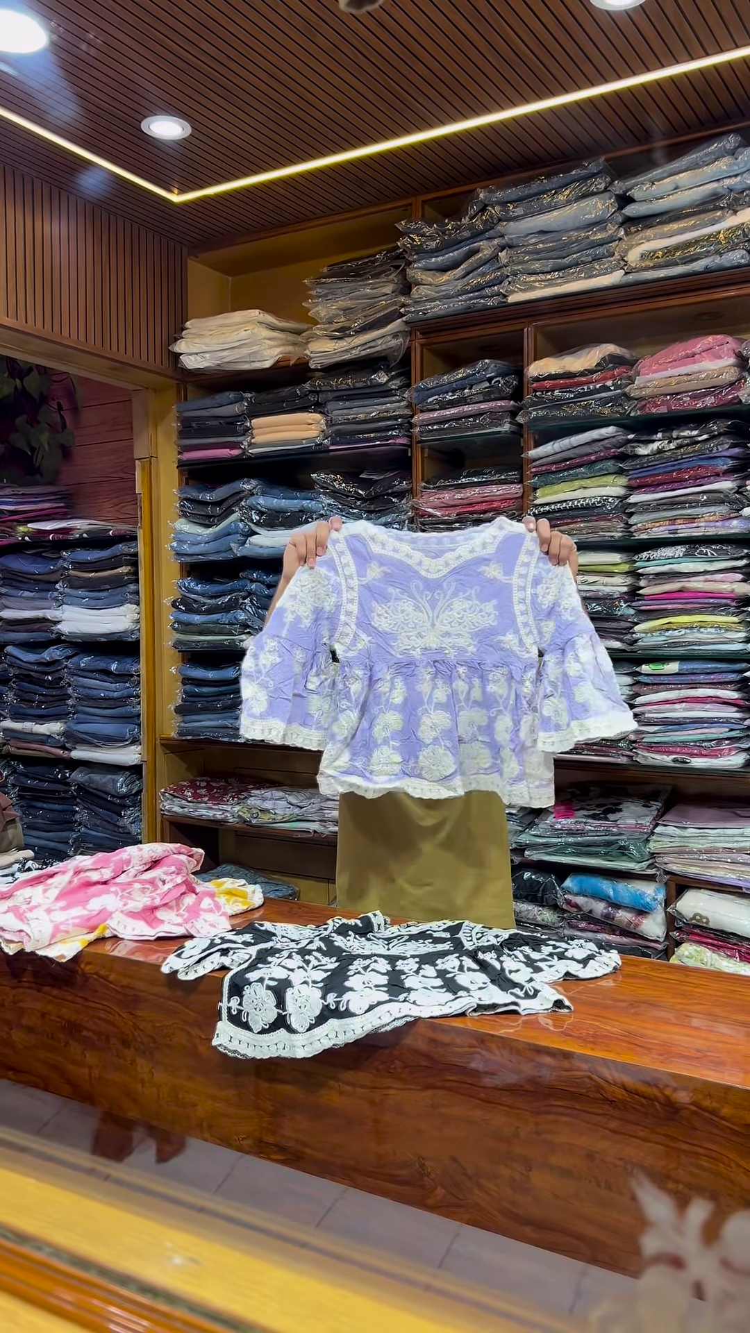 Add a soft and elegant touch to your ethnicwear or fusion collection with this pink and white embroidered long-sleeve top, designed for women who appreciate delicate craftsmanship and versatile styling. With its modest silhouette and intricate front detailing, this garment is ideal for boutique displays, festive catalogs, and everyday fashion campaigns.